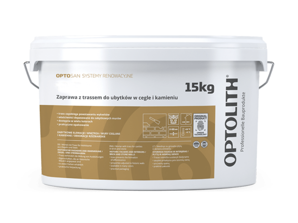 However, not only is Optosan by Optolith® an offer of standard products. Historic bricks or stone walls from different eras, which differ greatly both aesthetically and in their state of preservation, impose demanding requirements. Therefore, the range also includes mortars prepared to meet these requirements (i.e., the choice of aggregate fraction or colour, adaptation of the formulation to various application methods, or adaptation of the formulation to changed parameters, etc.).