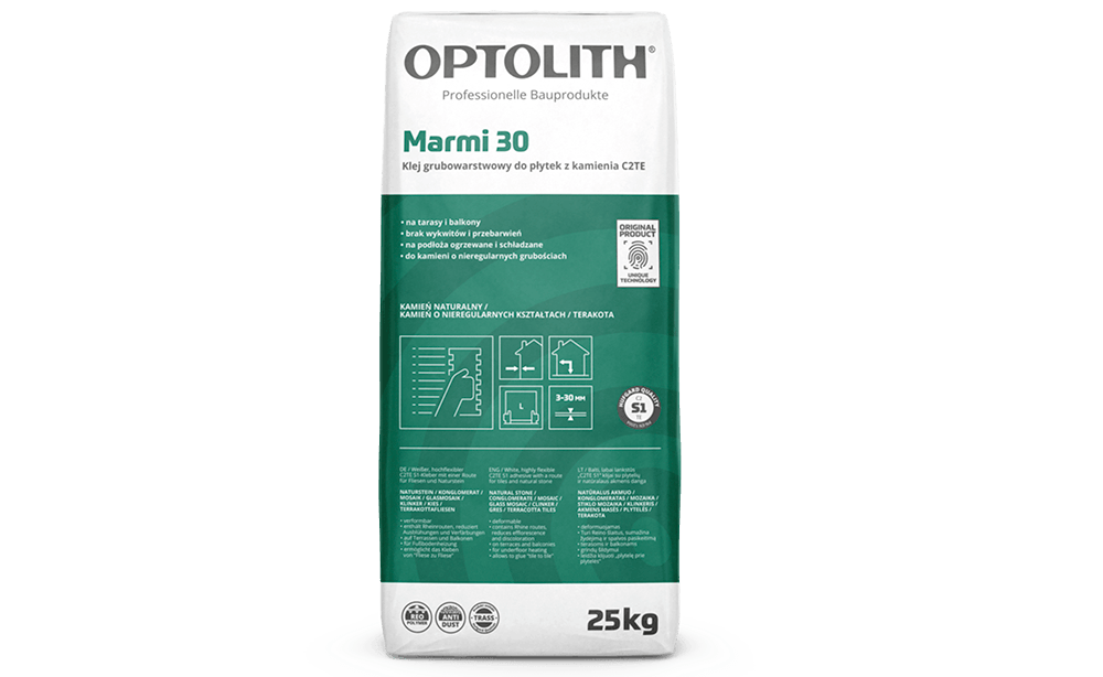 Home / Optoflex / Tile and stone adhesives / Marmi 30 – Highly deformable, C2TE S1 class, thick-bed, adhesive, with trass for tiles and natural stone (White)