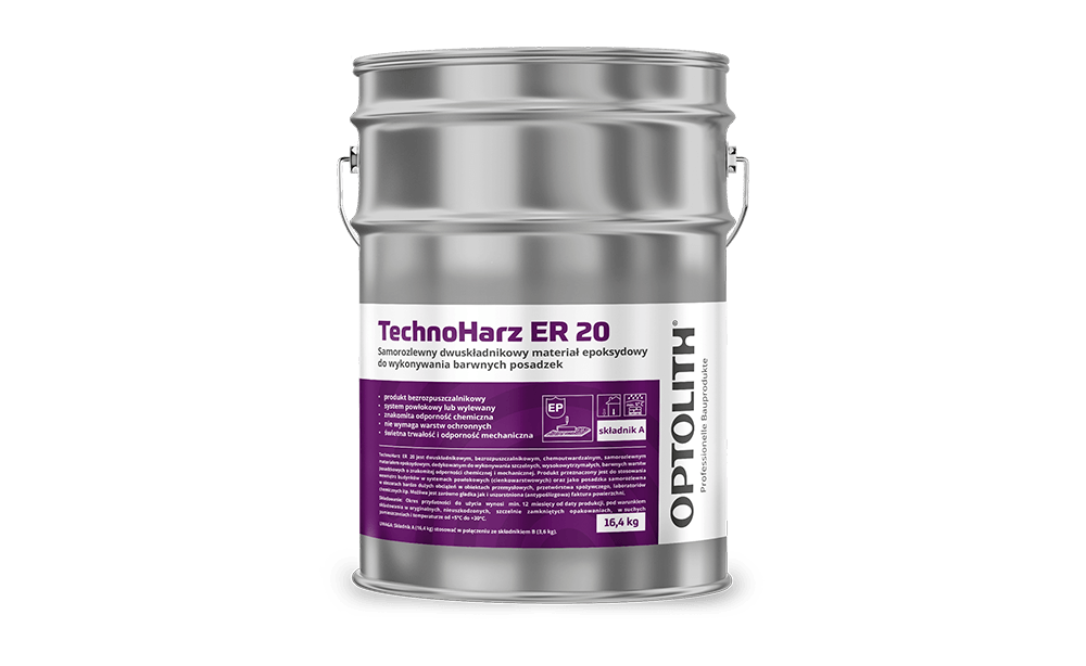 TechnoHarz ER 20 is a two-component, solvent-free, chemically self-curing, self-levelling epoxy material, dedicated to producing tight, high-strength, coloured floor coatings with excellent chemical and mechanical resistance. This product is designed for indoor use in coating systems (thin layer), and as a self-levelling floor in very heavy-duty areas in industrial facilities, food processing, chemical laboratories, etc. Both smooth and roughened (non-slip) surface textures are possible.