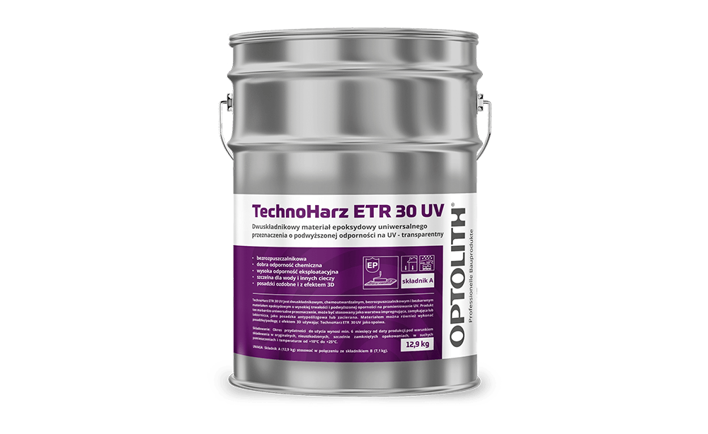 TechnoHarz ETR 30 UV is a two-component, chemically curing, solvent-free and colourless epoxy material with high durability and increased UV resistance. This product has a very versatile use. It can be used as an impregnating, sealing or varnishing layer, or as an anti-slip or trowelled floor. The material can also be used to create a floor/floor with 3D effect using TechnoHarz ETR 30 UV as a binder.