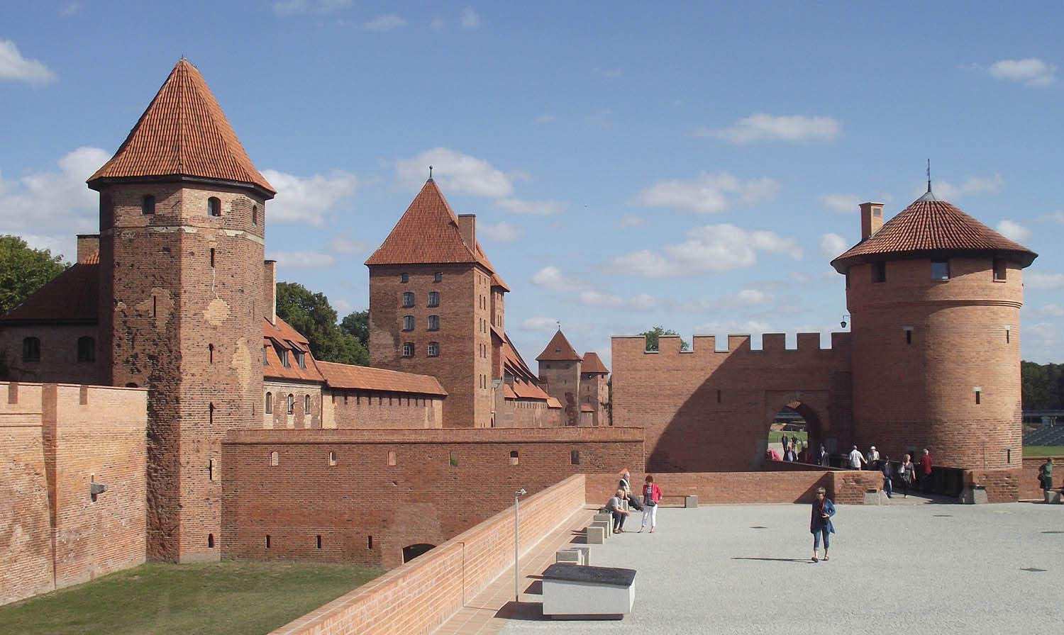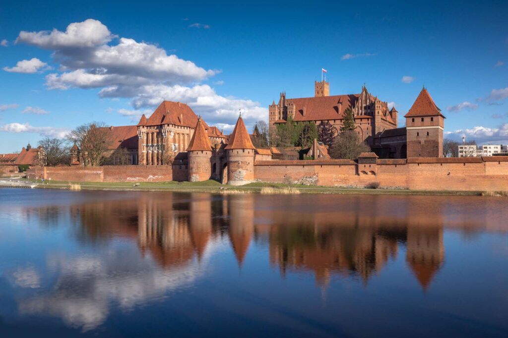Malbork Castle is one of the finest examples of medieval defensive and residential architecture in Europe. The castle was built between 1274 and 1300, and it was the capital of the Teutonic Order from 1309. The castle is listed by UNESCO as a World Heritage Site. It also has been considered as the largest castle in the world measured by land area.